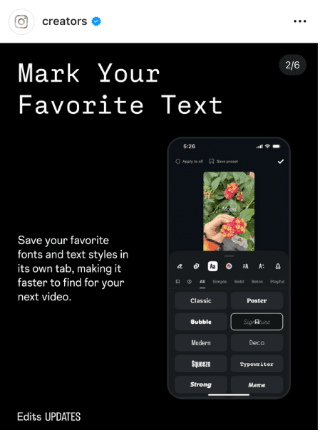 Mit den neuen Updates gibt dir Edits noch mehr Spielraum bei der Gestaltung deiner Videos. Du kannst Lieblings-Schriftarten und Textstile jetzt separat speichern, sodass du sie beim nächsten Projekt schneller wiederfindest. Das spart Zeit und sorgt gleichzeitig für einen konsistenteren Look über mehrere Videos hinweg.